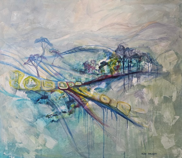 "Reaching the unseen" explores the quiet space between what we know and what lies just beyond our grasp. Soft, flowing lines pull the eye across the shifting landscapes, while the subtle bridges and pathways hint at movement into unfamiliar territory. Layered colours - sometimes calm, sometimes intense- suggest memories, choices, and invisible connections shaping our journey. This art pairs beautifully with "Bridging the unknown", together forming a visual dialogue about exploration, intuition, and the courage to step into new realms.